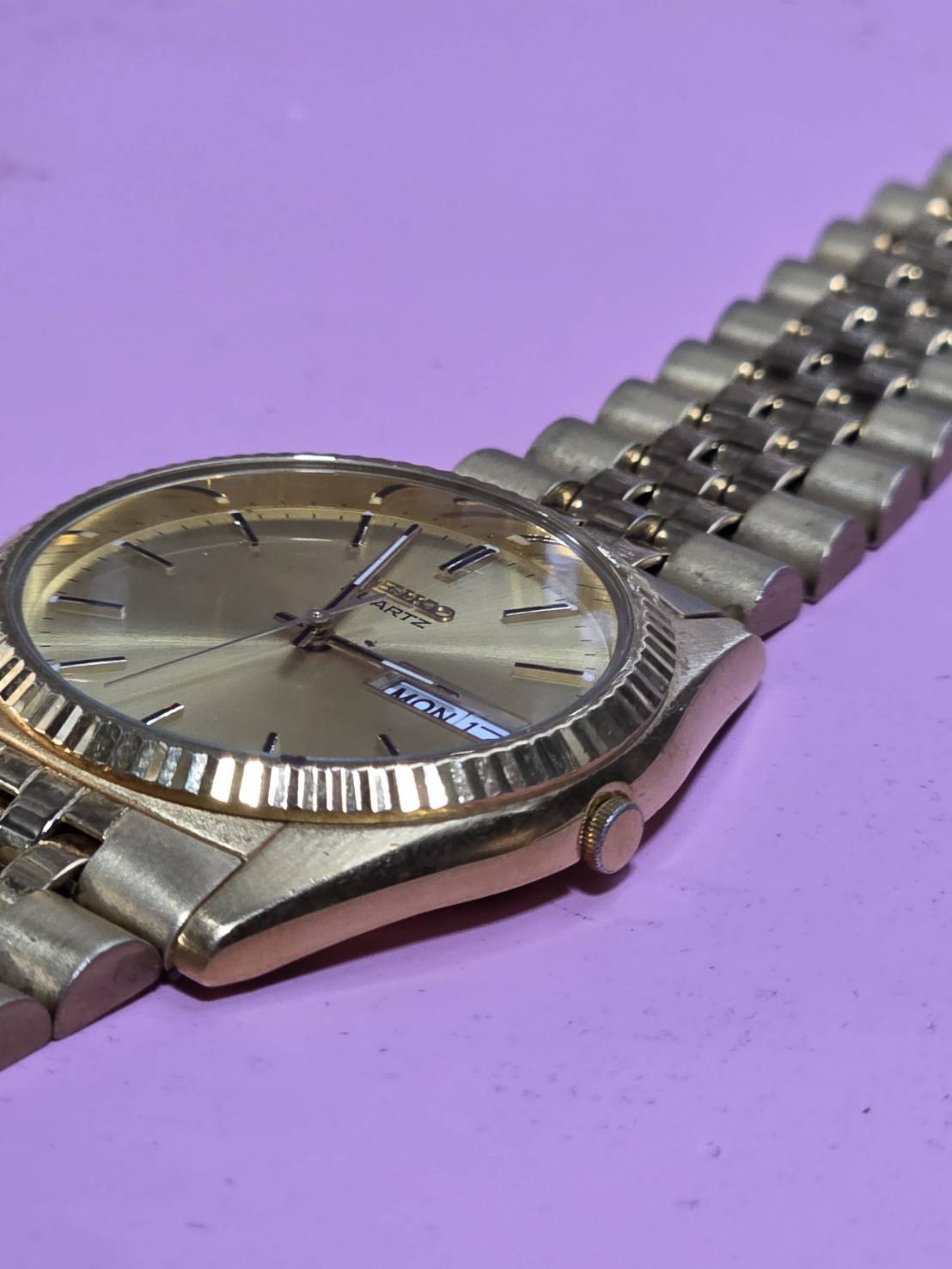 นาฬิกาในภาพคือ Seiko Quartz สไตล์ "Datejust" หรือที่มักเรียกกันว่ารุ่น Presidential