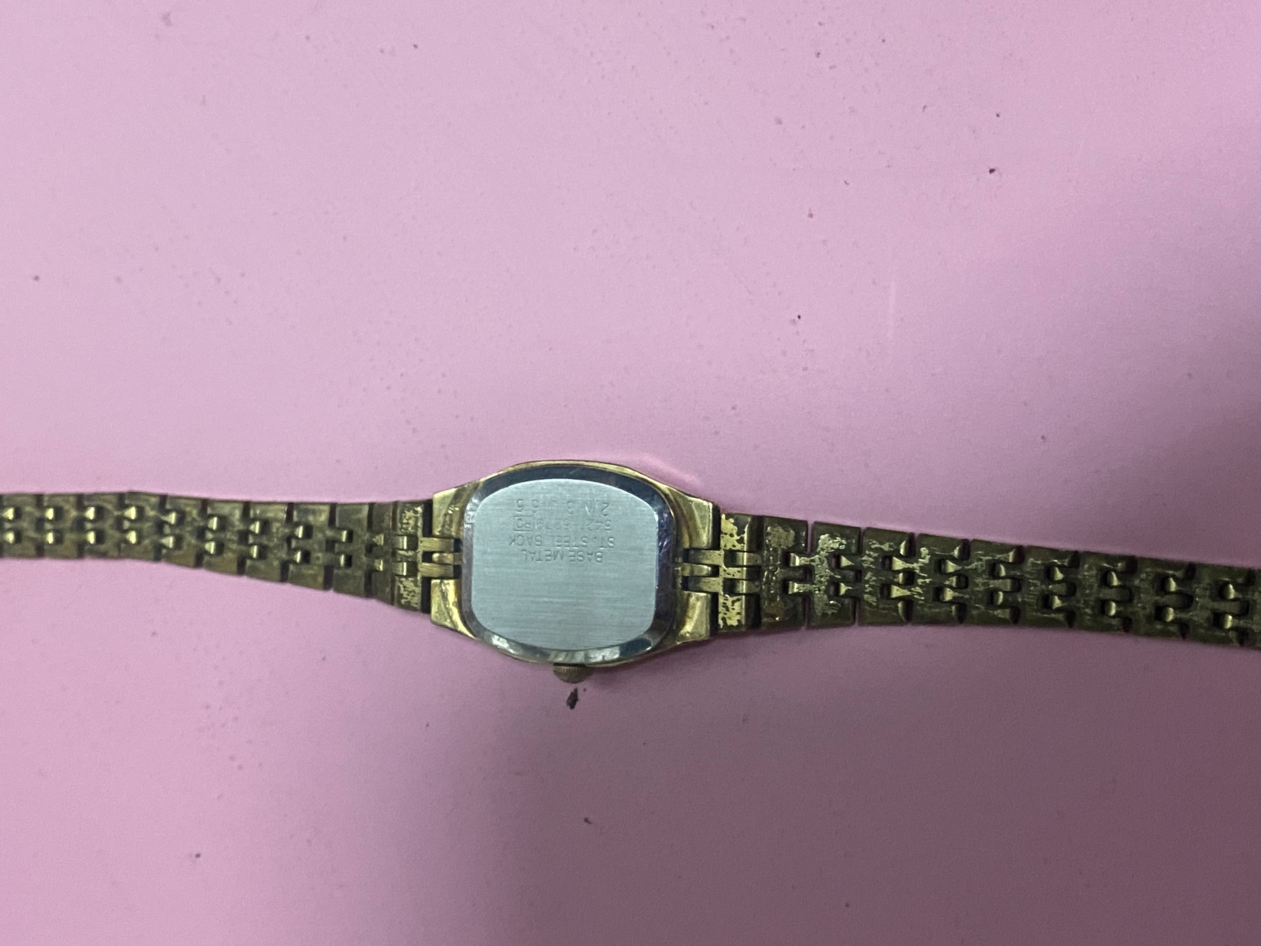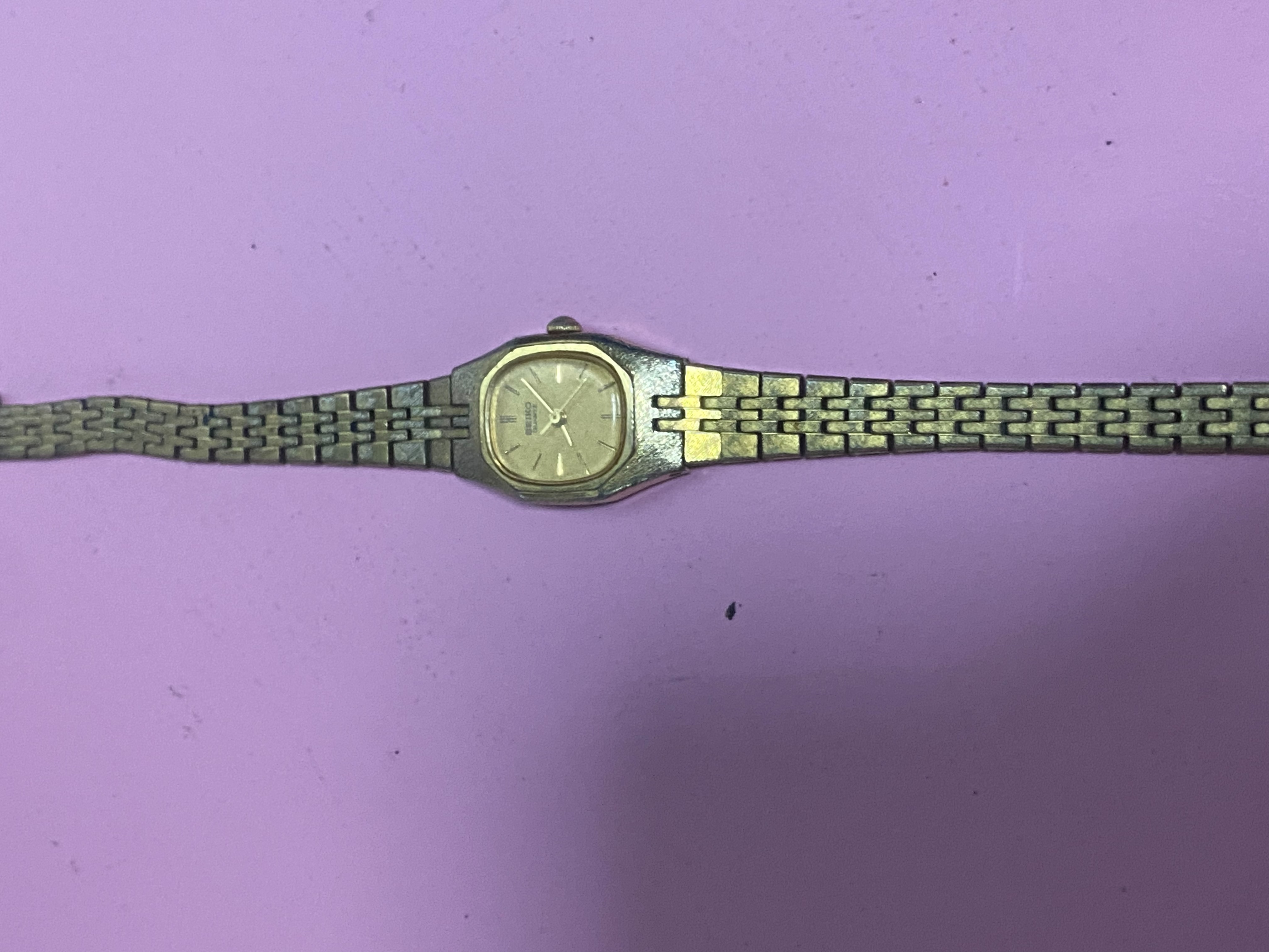 นาฬิกาที่คุณส่งมาคือนาฬิกาวินเทจสำหรับสุภาพสตรีจากแบรนด์ Seiko (ไซโก้) ซึ่งเป็นแบรนด์ยอดนิยมจากประเทศญี่ปุ่นครับ แบรนด์: Seiko (ไซโก้) ดีไซน์: ตัวเรือนทรงถังเบียร์ขนาดเล็ก (Tonneau/Barrel Shape) สีทองหรูหรา มาพร้อมสายสแตนเลสสีทองดีไซน์แบบ Brick-link หน้าปัด: สีทองแชมเปญ (Champagne Dial) ประดับด้วยขีดบอกเวลาสีทอง (Baton Indexes) ระบบการทำงาน: Quartz (ระบบถ่าน) ซึ่งขึ้นชื่อเรื่องความเที่ยงตรงและดูแลรักษาง่าย รหัสรุ่น (ที่ใกล้เคียง): คาดว่าเป็นซีรีส์ที่ใช้เครื่องรหัส 5421 หรือ 1N01 (เช่นรุ่น 5421-5279 หรือ 1N01-0E19) ซึ่งเป็นรุ่นยอดนิยมสำหรับนาฬิกาแฟชั่นสุภาพสตรีช่วงยุค 80s - 90s