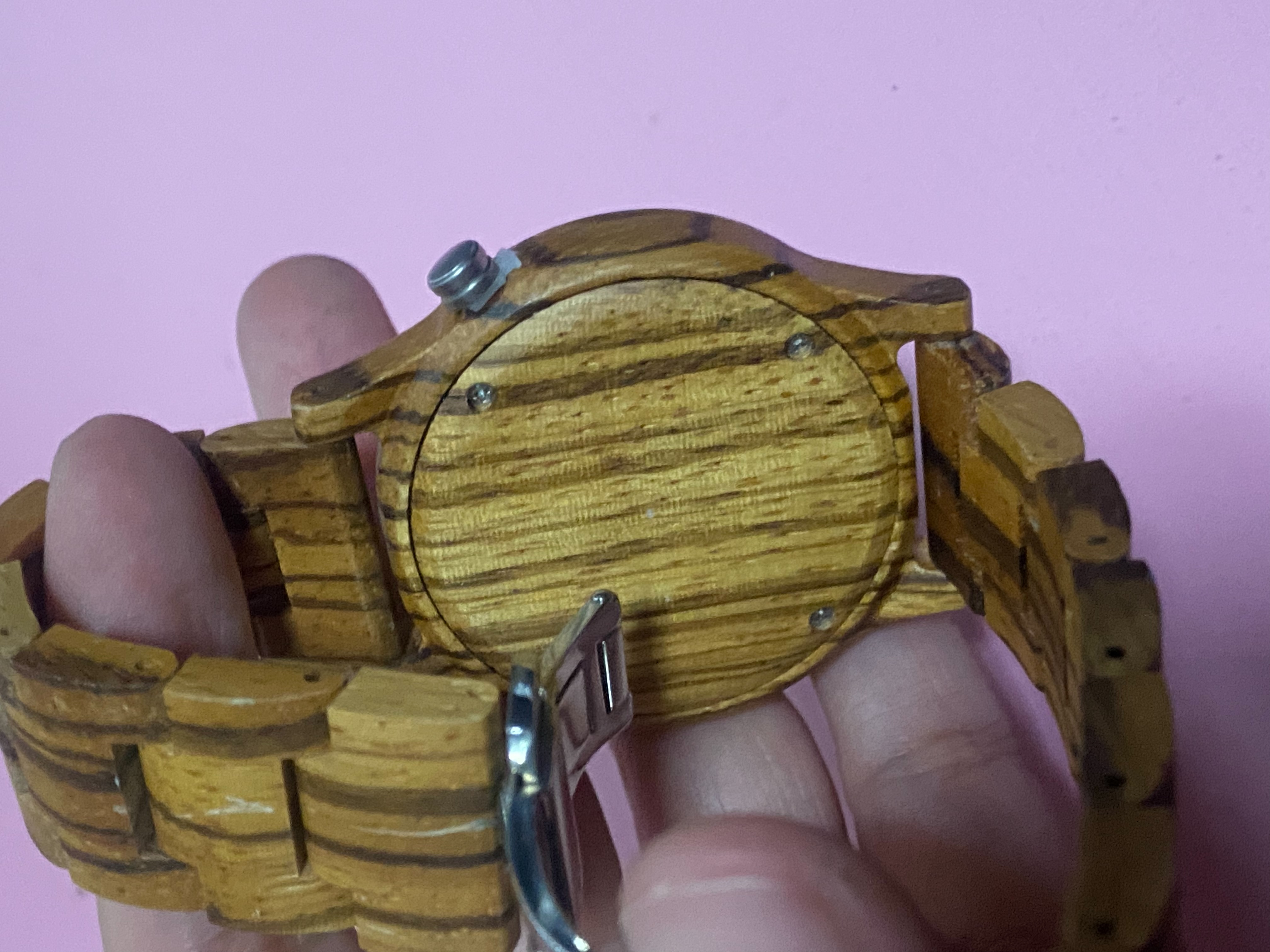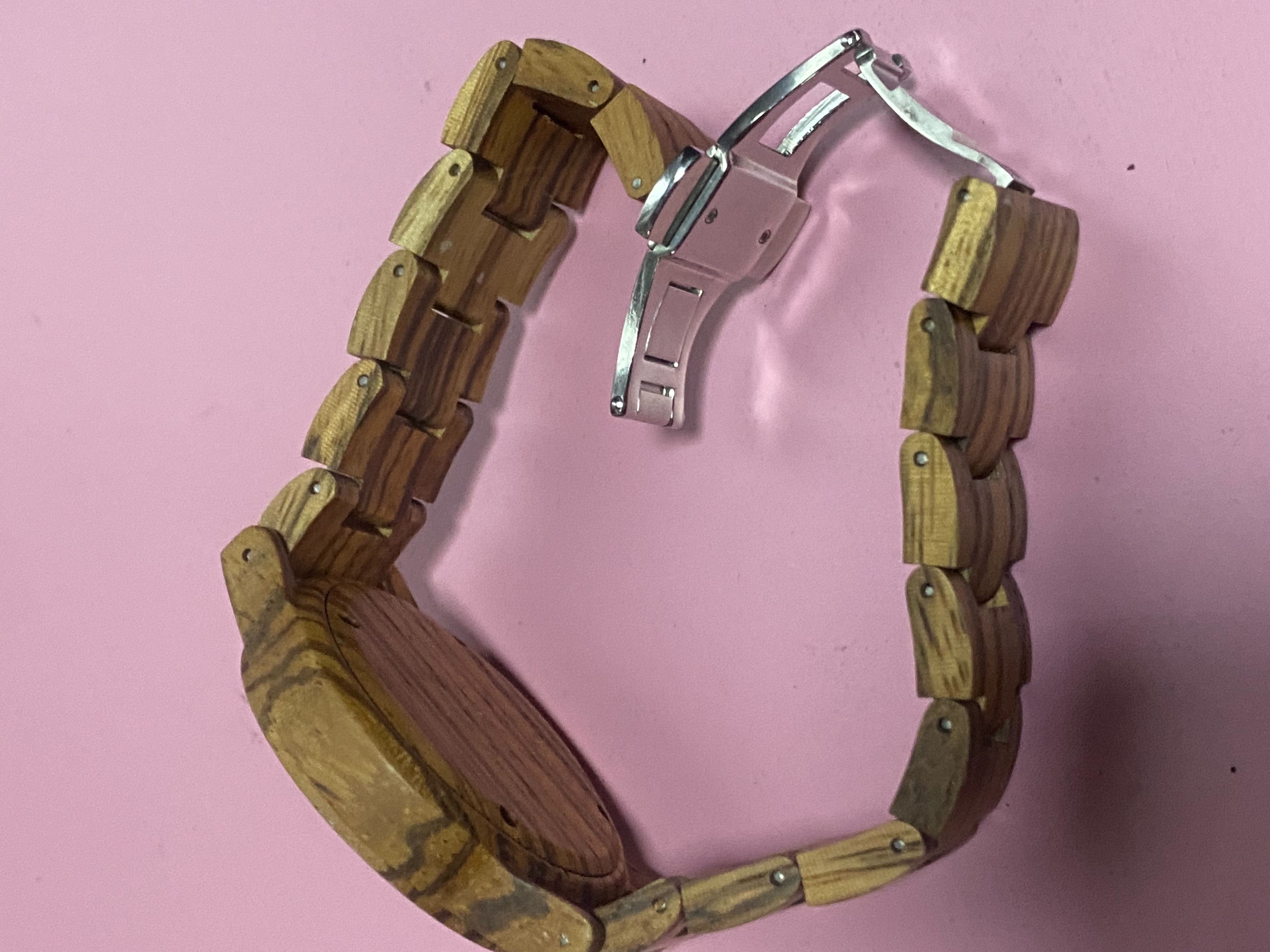 นาฬิกาในภาพคือแบรนด์ Timbersun (ทิมเบอร์ซัน) รุ่น Night Beige Silver ซึ่งเป็นนาฬิกางานแฮนด์เมดที่โดดเด่นด้วยการใช้ไม้ธรรมชาติครับ ข้อมูลสินค้า แบรนด์: Timbersun วัสดุ: ตัวเรือนและสายทำจาก ไม้เซบราโน (Zebrawood) ซึ่งมีลวดลายไม้ที่เป็นเอกลักษณ์เฉพาะตัวในทุกเรือน หน้าปัด: ทำจาก อะลูมิเนียม (Aluminum) สีเงิน ดีไซน์เรียบง่ายแบบมินิมอล ฟังก์ชัน: มีช่องแสดง วันที่ (Date) ที่ตำแหน่ง 3 นาฬิกา [จากภาพ] ระบบการทำงาน: Quartz (ใช้ถ่าน)