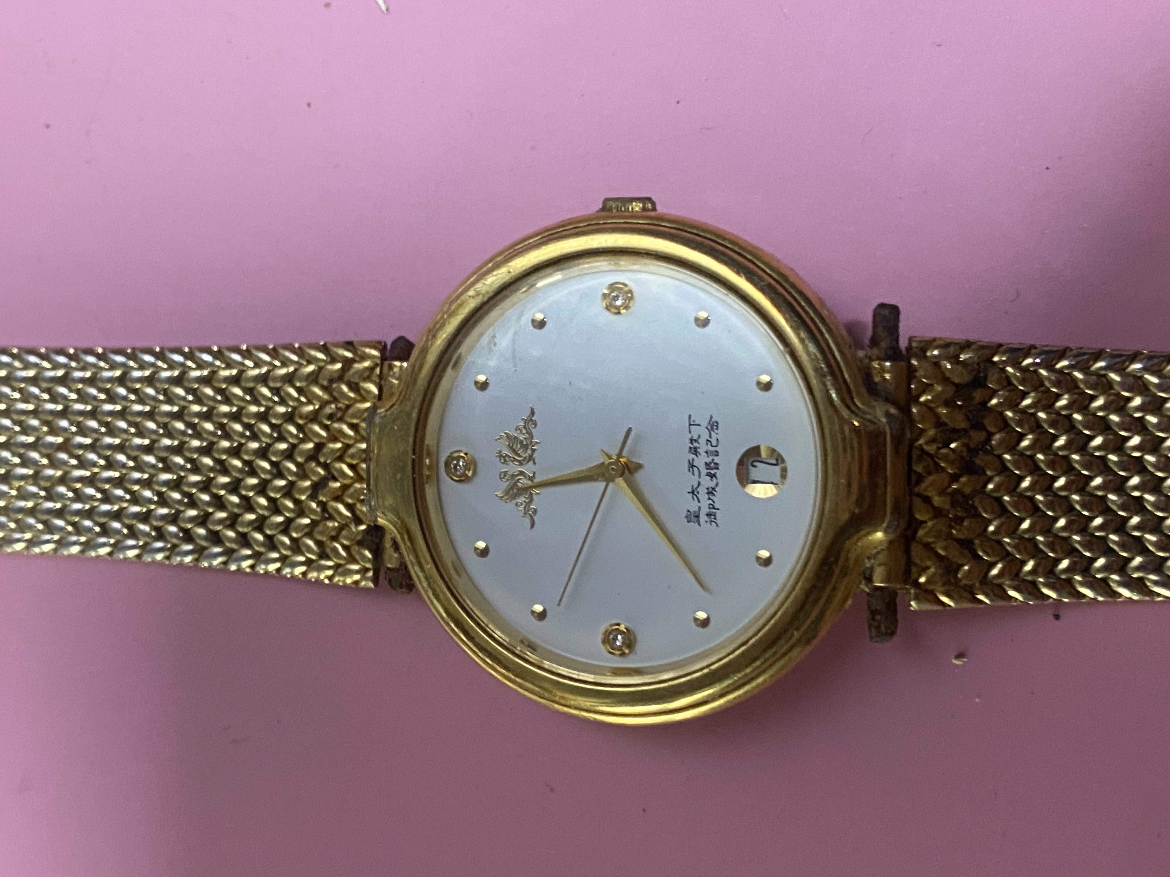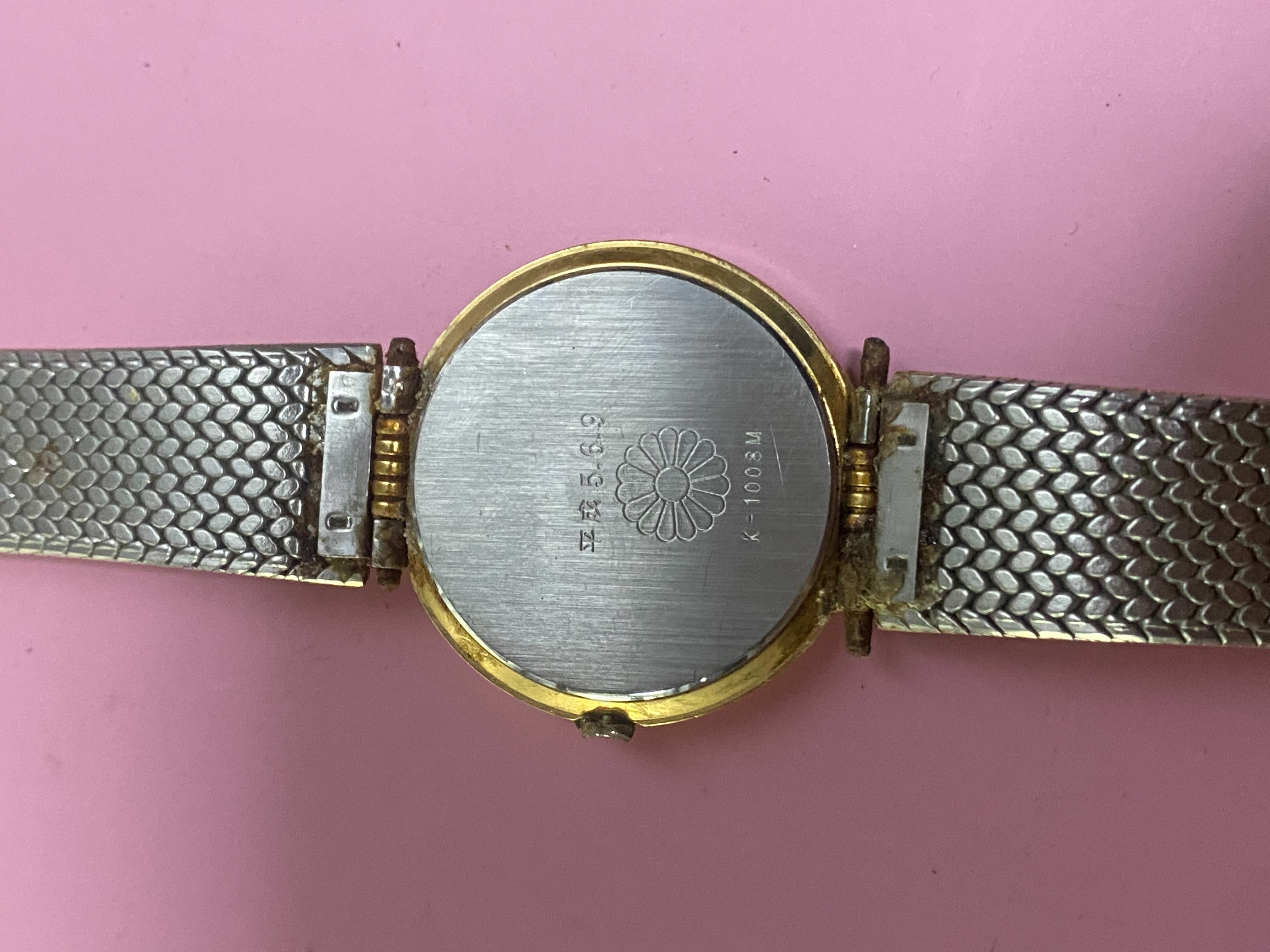 นาฬิกาในรูปภาพของคุณคือ นาฬิกาที่ระลึกเนื่องในวโรกาสพระราชพิธีราชาภิเษกสมรสของเจ้าชายนะรุฮิโตะ มกุฎราชกุมารแห่งญี่ปุ่น (พระอิสริยยศในขณะนั้น) กับนางสาวมาซาโกะ โอวาดะ ซึ่งจัดขึ้นในปีเฮเซที่ 5 หรือปี ค.ศ. 1993 (พ.ศ. 2536) ข้อมูลรายละเอียดของนาฬิกา ประเภท: นาฬิกาที่ระลึกพิเศษ (Imperial Special Commemorative Item) ดีไซน์หน้าปัด: ตกแต่งด้วยสัญลักษณ์นกฟีนิกซ์ (Hou-ou) และมีข้อความเป็นภาษาญี่ปุ่นระบุว่า "皇太子殿下御成婚記念" (ที่ระลึกพระราชพิธีราชาภิเษกสมรสของมกุฎราชกุมาร) วัสดุ: ตัวเรือนและสายเป็น โลหะชุบทอง (Gold Plated) ส่วนฝาหลังมักทำจากสแตนเลสสตีลพร้อมสลักตราพระราชลัญจกรดอกเบญจมาศ (Imperial Seal of Japan) ระบบการทำงาน: ใช้ระบบควอตซ์ (Quartz) หรือระบบใช้ถ่าน คุณสมบัติพิเศษ: บางรุ่นมีการประดับอัญมณีหรือเพชรขนาดเล็กที่ตำแหน่งหลักชั่วโมงเพื่อความสวยงาม
