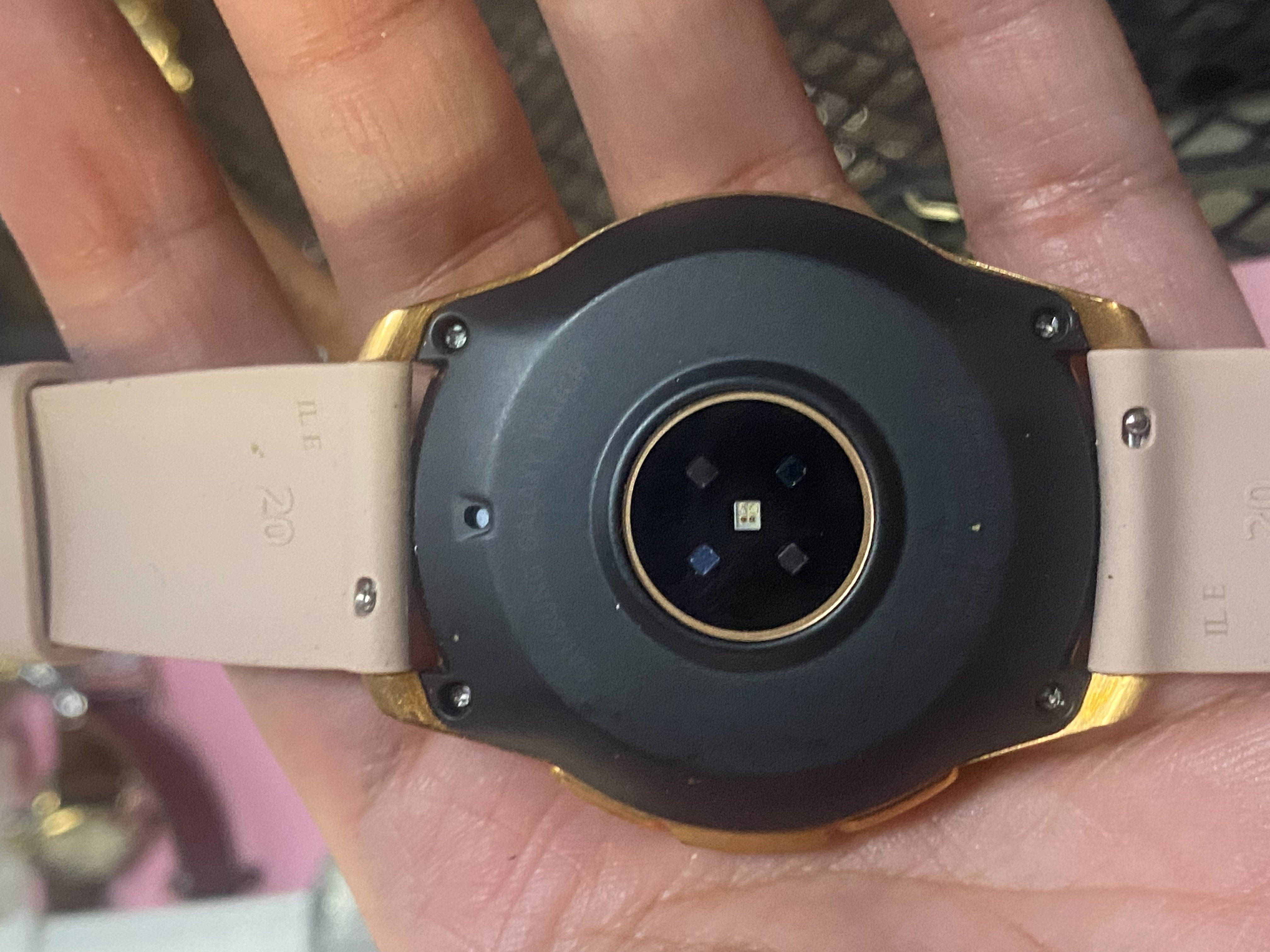 นาฬิกาอัจฉริยะในรูปภาพคือ Samsung Galaxy Watch (รุ่นแรก) ขนาด 42 มม. สี Rose Gold (รหัสรุ่น SM-R810) ซึ่งมีรายละเอียดดังนี้ครับ: ข้อมูลแบรนด์และปีที่ผลิต แบรนด์: Samsung (ซัมซุง) ปีที่ผลิต: นาฬิการุ่นนี้เปิดตัวครั้งแรกในช่วงปลายปี 2018 (พ.ศ. 2561) คุณสมบัติเด่น: หน้าจอ AMOLED แบบวงกลม ตัวเรือนสแตนเลสสตีล ขอบหน้าปัด (Bezel) หมุนได้เพื่อควบคุมการใช้งาน และมาพร้อมสายซิลิโคนสีชมพูเบจ (Pink Beige)