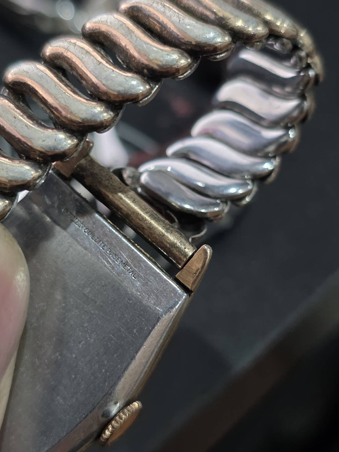 นาฬิกาที่คุณส่งมาคือ Gruen Veri-Thin ซึ่งเป็นหนึ่งในแบรนด์นาฬิกาวินเทจที่มีชื่อเสียงมาก โดยเฉพาะในช่วงต้นถึงกลางศตวรรษที่ 20 ครับ ข้อมูลรายละเอียดของนาฬิกา แบรนด์ (Brand): Gruen (กรูเอน) รุ่น Veri-Thin ปีผลิต (Production Year): โดยส่วนใหญ่จะผลิตในช่วงปี ค.ศ. 1940 - 1950 บางเรือนอาจระบุเจาะจงได้ถึงปี 1942 หรือ 1947 ตามลักษณะตัวเรือนและการดีไซน์ วัสดุผลิต (Materials): ตัวเรือน: มักทำจาก Gold Filled (ทองหุ้ม) ความบริสุทธิ์ 10K หรือ 14K ฝาหลัง: บางรุ่นเป็นแบบฝาหลังสเตนเลสสตีล (Stainless Steel Back) สีตัวเรือน: จากภาพมีลักษณะเป็นสี Rose Gold (นาก) หรือทองชมพู ซึ่งเป็นที่นิยมในยุคนั้น ระบบการทำงาน: เป็นระบบ ไขลาน (Manual Winding) แบบสองเข็มครึ่ง (มีเข็มวินาทีแยกวงที่ตำแหน่ง 6 นาฬิกา)
