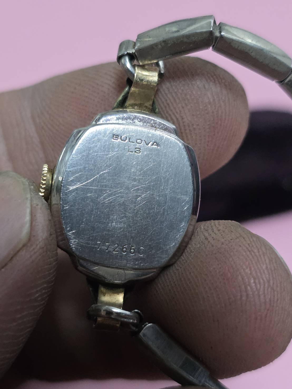 นาฬิกาเรือนนี้คือ Bulova (บูโลวา) รุ่น Fifth Avenue ซึ่งเป็นนาฬิกาวินเทจสำหรับผู้หญิงที่มีความหรูหราและประวัติศาสตร์ที่น่าสนใจมากครับ การมีกล่องกำมะหยี่สีม่วงดั้งเดิมมาด้วยช่วยเพิ่มมูลค่าสะสมได้สูงมาก ข้อมูลรายละเอียดของนาฬิกา แบรนด์ (Brand): Bulova (รุ่น Fifth Avenue New York) ปีผลิต (Production Year): ผลิตในช่วง ค.ศ. 1950 - 1953 (รหัสที่ฝาหลัง L3 ยืนยันปี 1953) [1, 9, 13] วัสดุผลิต (Materials): ตัวเรือน: เป็นทองหุ้ม 10K Gold Filled หรือ 10K Rolled Gold Plate (RGP) ซึ่งจะมีความทนทานและหนากว่าการชุบทองทั่วไป [2, 4, 18] ฝาหลัง: ทำจากสเตนเลสสตีล (Stainless Steel) [4, 7] สาย: สายยืด (Expansion Band) สีเงินหรือสเตนเลสสตีลสไตล์วินเทจ [1, 5, 8] ระบบการทำงาน: ระบบ ไขลาน (Manual Winding) ที่ใช้เครื่องกลไก 17 หรือ 21 จิวเวล (Jewels) ตามมาตรฐานความเที่ยงตรงของ Bulova ยุคนั้น [1, 6, 16]